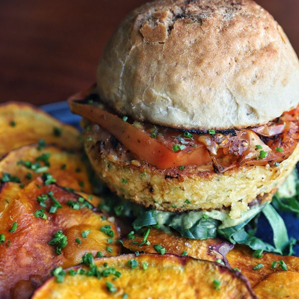 Faláfel de Garbanzo, Tomates Asados, Cama de Espinaca con Dressing De Palta y Pepinillos