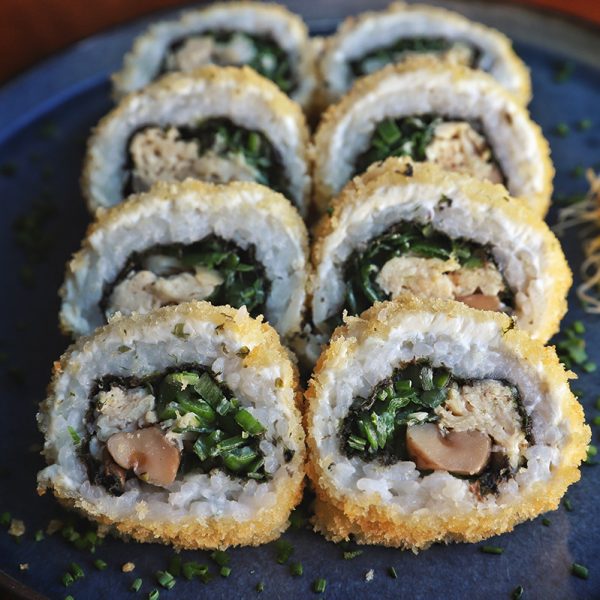 Pollo Teriyaki, Champiñón, Cebollín, Doble Envoltura de Queso Crema y Panko